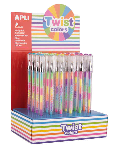 Apli Expositor Boligrafos Gel Pen Twist Colors - 0.8mm - Tinta Que Cambia de Color - Acabado Fluor -