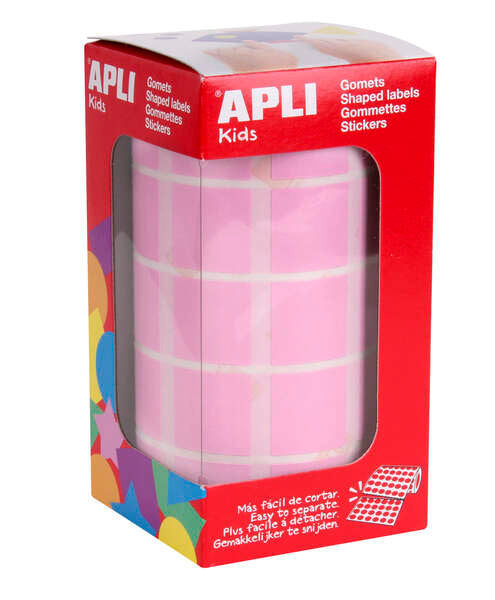 Apli Gomets Cuadrados Rosa - 20x20mm - 59 Hojas Pretroqueladas - 1770 Gomets por Rollo - Ideal para Escuelas y Talleres Infantiles - Normas EN-71 y FSC - Adhesivo Base Agua - Materiales 100% Reciclables