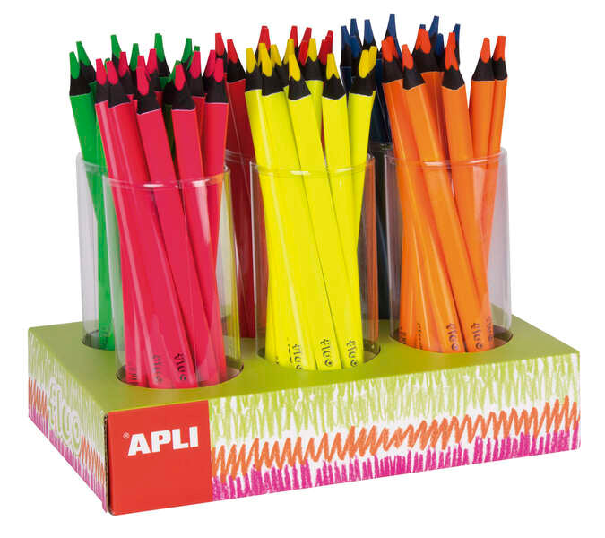 Apli Jumbo Fluor Expositor de 108 Lapices Triangulares de Colores Fluorescentes - 5mm de Grosor - Co