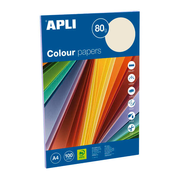 Apli Pack con 100 Hojas de Papel A4 - 20 Hojas por Color - Colores Surtidos Pastel