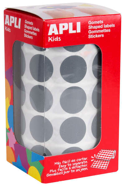 Apli Pack de 1770 Gomets Redondos Ø 20mm - 59 Hojas Pretroqueladas - Adhesivo Permanente - Ideal para Escuelas Infantiles y Colegios - Color Gris