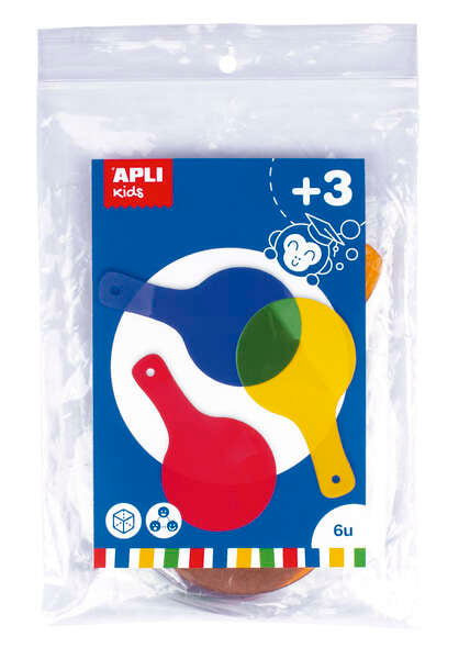 Apli Paletas Translucidas para Mezcla de Colores - Tamaño 80x140mm - Ideal para Escuelas y Talleres Infantiles - Colores Surtidos: Amarillo, Rojo, Verde, Azul, Naranja y Lila