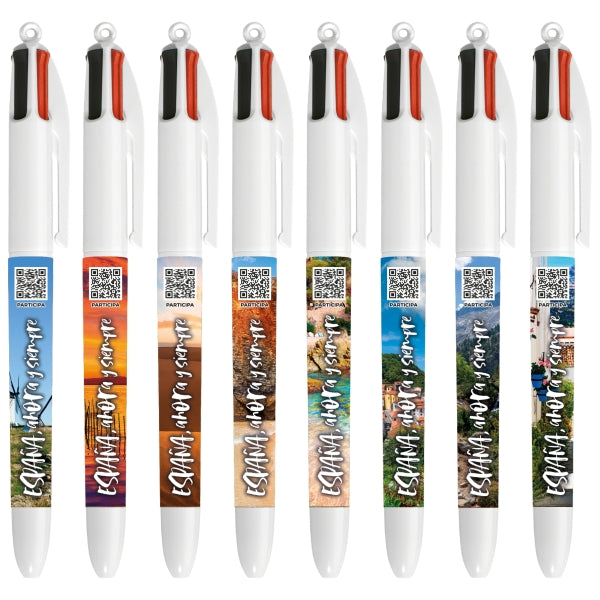 Clásicos bolígrafos BIC 4 Colores Coleccion Ahora y Siempre Imagenes de España Organiza tus notas por colores. Organízate, toma notas, prepara presentaciones y añade un toque personal a cada cosa que hagas con estos divertidos bolígrafos BIC 4 Colores con diseños diferentes con degradado. Características: -Retráctil 4 en 1 -Punta de 1mm -Trazo o anchura de línea: 0.4mm -Colores de la tinta: Azul, negro, rojo y verde. Especificaciones: -Caja de 12ud