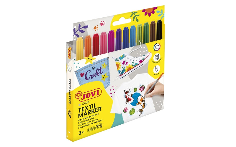 Jovi Textil Marker Estuche de 12 Rotuladores Textiles - Tinta Base Agua - Punta Pincel - Secado Rapi